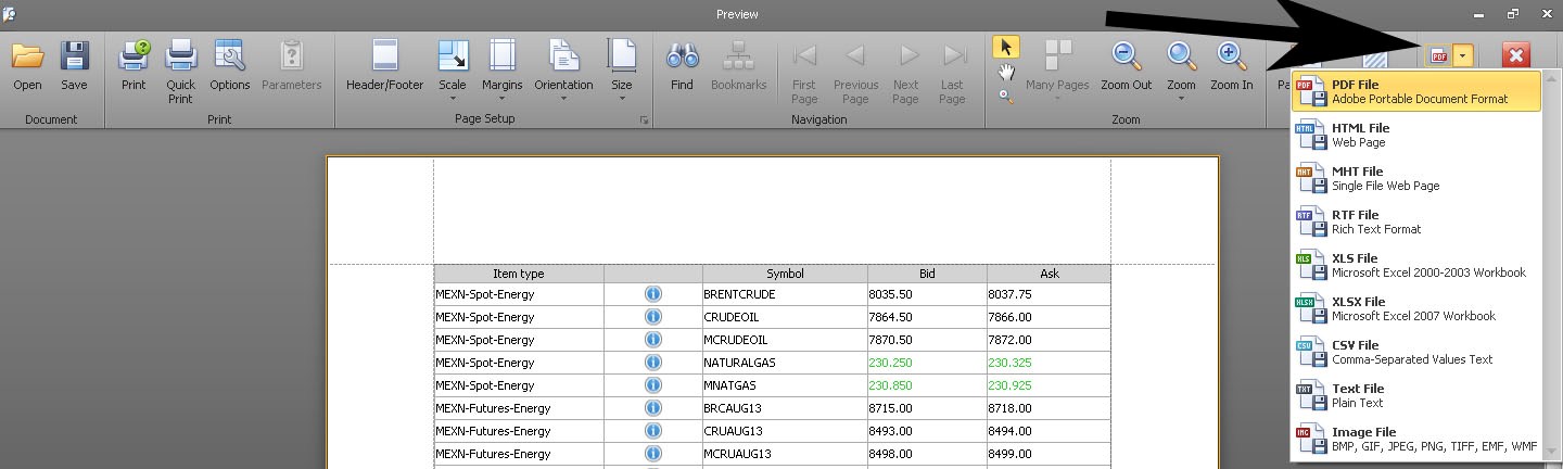 Users of AX1 Console can simply print or export the contents of Watchlist to the desired disk drives of their computer devices in different file formats like, pdf, html, xls, image et cetera. This feature has been availed to the trading console to facilitate users the access to the information in both hard/print and soft copies, eventually facilitating an additional source of reference/record to the market participants.
