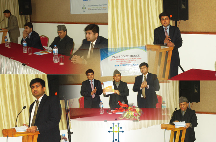 After an overwhelming response to the first edition, MEX Nepal proudly launched the second edition, MEX Yearbook 2011 amongst an impressive gathering in Union House, Anamnagar. The dignitaries for the occasion included the Chairman of SEBON, Mr. Bauram Shrestha, who officially launched the MEX Yearbook 2011. In his speech, the Managing Director of MEX Nepal, Mr. Dipendra Khatiwada, urged SEBON to speed up the process of regulation which will harbor well for the commodity market. The Chairman re-affirmed that SEBON is finalizing the draft for the regulation of the commodity markets which will come into effect very soon. Mr, Jitesh Surendran, CEO of MEX Nepal, thanked the dignitaries and the media personnel for gracing the occasion and put forward his views on the market outlook. Please click on the photograph below to access more pictures from the event.