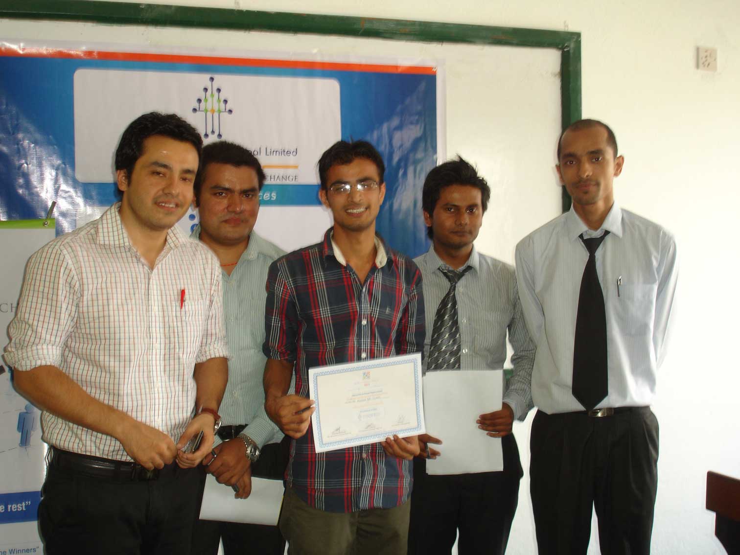 MEX Talent Search 2012- an initiative of MEX-was organized at Ace Institute of Management amidst much hype and buzz from the participating students. The competition began with the introduction to the competition and the rules thereafter by the moderator. One by one, students were asked to shed light on the topic entitled, “Securities Market in Nepal: A Perspective” The students cited numerous examples related to the topic and exuberantly expressed their opinions. The esteemed panel of judges evaluating the students on their public speaking ability included the Manager of R&D Dept. at MEX Nepal, Mr. Amit Pyakurel, the Program Coordinator of the college itself, Mr. Hari Om Sharma and representing Dreams Unlimited Investment Services Private Limited, a broker affiliated with MEX, Mr. Sudeep Luitel. The judges evaluated the students on various aspects including the content furnished, delivery and persuasion amongst others. At the conclusion of the event, Mr. Krishna Raj Tiwari emerged victorious. The winner received a certificate from the Program Coordinator of the college itself, Mr. Hari Om Sharma.