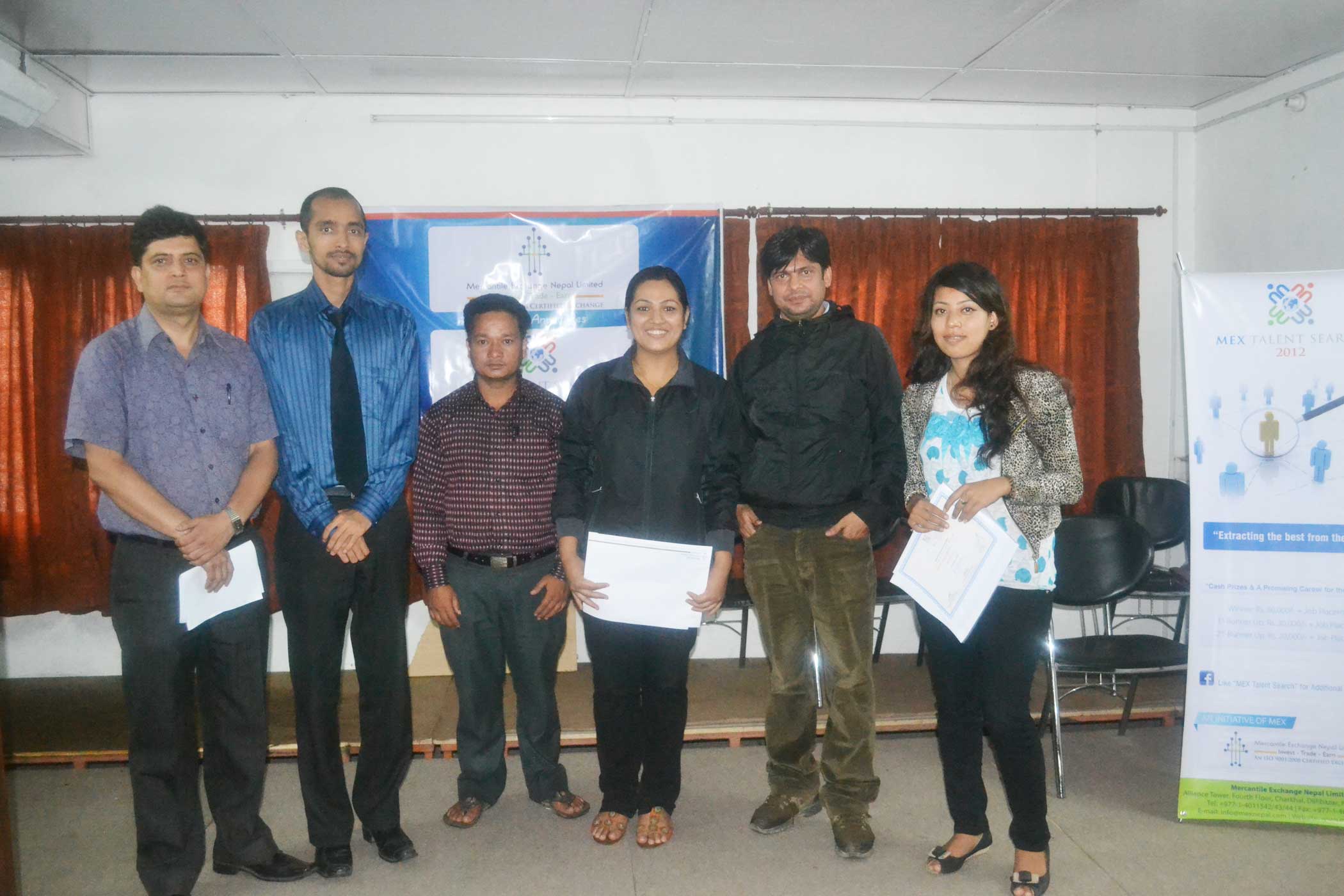 MEX Talent Search 2012- an initiative of MEX-was organized at Liberty College amidst much hype and buzz from the participating students. The competition began with the introduction to the competition and the rules thereafter by the moderator. One by one, students were asked to shed light on the topic entitled, “Productive & Unproductive Investment in Nepal” The students cited numerous examples related to the topic and exuberantly expressed their opinions. The esteemed panel of judges evaluating the students on their public speaking ability included the Manager of R&D Dept. at MEX Nepal, Mr. Amit Pyakurel, the lecturer of the college itself, Mr. Chetan Acharya and representing Broadway Capital & Derivatives Research Private Limited, a member affiliated with MEX, Mr. Kishor Basal. The judges evaluated the students on various aspects including the content furnished, delivery and persuasion amongst others. At the conclusion of the event, Miss. Bandana Bista emerged victorious edging out Miss. Sujita Prajapati to the runners-up position. The winners received certificates from the Principal of the college itself.