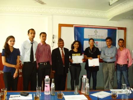 MEX Talent Search 2012- an initiative of MEX-was organized at Nepal College of Management amidst much hype and buzz from the participating students. The competition began with the introduction to the competition and the rules thereafter by the moderator. One by one, students were asked to shed light on the topic entitled, “Role of SEBON in regulation of securities market in Nepal”. The students cited numerous examples related to the topic and exuberantly expressed their opinions. The esteemed panel of judges evaluating the students on their public speaking ability included the Managing Director of MEX Nepal, Mr. Dipendra Khatiwada, the Principal of the college itself, Mr. Tula Raj Bashyel and representing Oscar Commodities & Investment Private Limited, a broker affiliated with MEX, Mr. Achyut Ramshal. The judges evaluated the students on various aspects including the content furnished, delivery and persuasion amongst others. At the conclusion of the event, Miss. Anjali Bhattarai emerged victorious edging out Miss. Rachana Luital to the runners-up position. The winner and the runner-up received certificates from the Principal of the college.