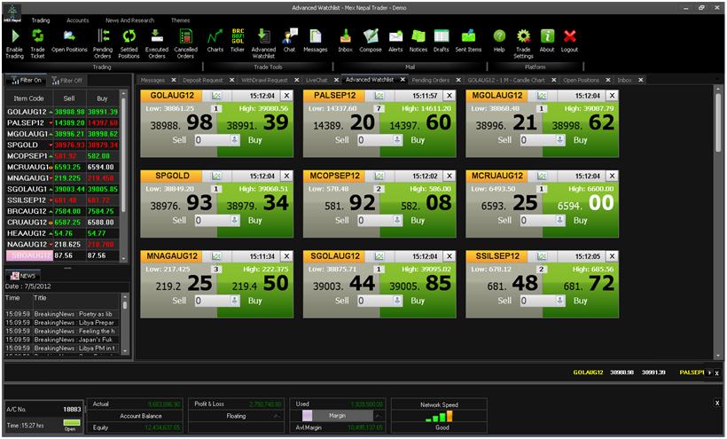 MEX Nepal has launched its new state-of-the-art software to its members on 4th July 2012. For the first time in Nepal, this complete exchange solution incorporates user-friendly features and applications to facilitate the growing needs of the trader. The software’s new features include market depth, indicators, charts, advanced settings and news & research. The added technical indicators are expected to assist the user for the advanced analysis of the price movements. Similarly, the chart in the new software is more customizable which actually can be viewed in six different ways. The software is also well-equipped for order-matching system with deliverable products in the near future given the government support. This software is expected to supersede the performance of exchange softwares available in the market. However, this is only the demo version of the software which will be upgraded before the final version is launched as per the feedback and recommendations of its members.
