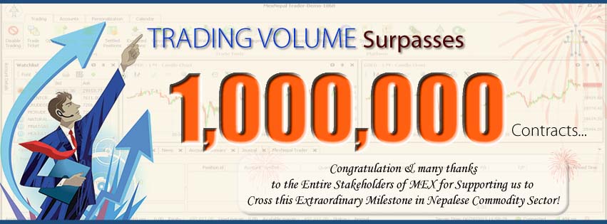 As the figure itself portraits the gravity of achieved milestone in the Nepalese commodity sector, MEX Nepal would like to thank all the participating entities and individuals in supporting it to achieve this extraordinary figure and also congratulate the entire eco-system of Nepalese commodity arena. MEX Nepal would like to seek further co-operation and support in the ensuing days!