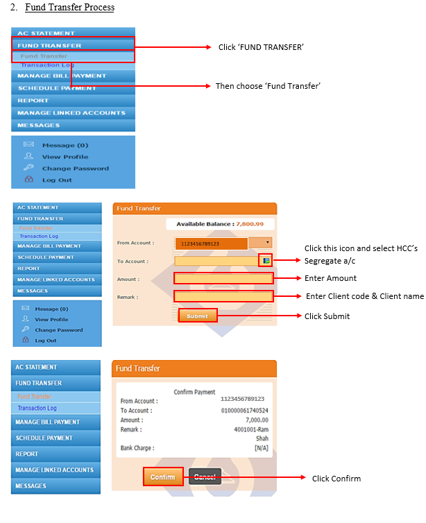 Mode of transfer of funds for all four Banks: