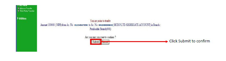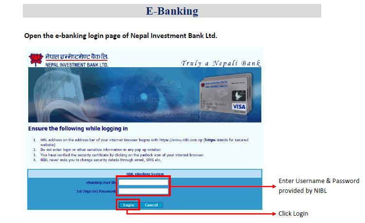 इन्टरनेट बैंकिङ्ग इन्टरनेट बैंकिङ्ग र नगद जम्मा गर्ने सिमा रकम, सम्बन्धित बैंकको नियमानुसार रहनेछ । इन्टरनेट बैंकिङ्गको रकम सिमा बढाउनका निम्ति बैंकसँग नै समन्वय गर्नुपर्नेछ ।)
